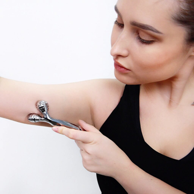 獨特的V 型按摩滾輪可用於臉部及身體多部位(手臂、腿部、大腿、腰部),幫助塑形、臉部提拉、緊緻肌膚並促進放鬆。